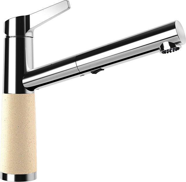 Смеситель SCHOCK SC-510-D CRISTALITE оснащен выдвижным изливом и функционирует в режимах душ / струя. Угол поворота излива составляет 120°. Легкое подключение модели производится гибкими шлангами длиной 450 мм. Вставки выполнены из материала CRISTALITE и комбинируются по цвету с мойками той же коллекции.