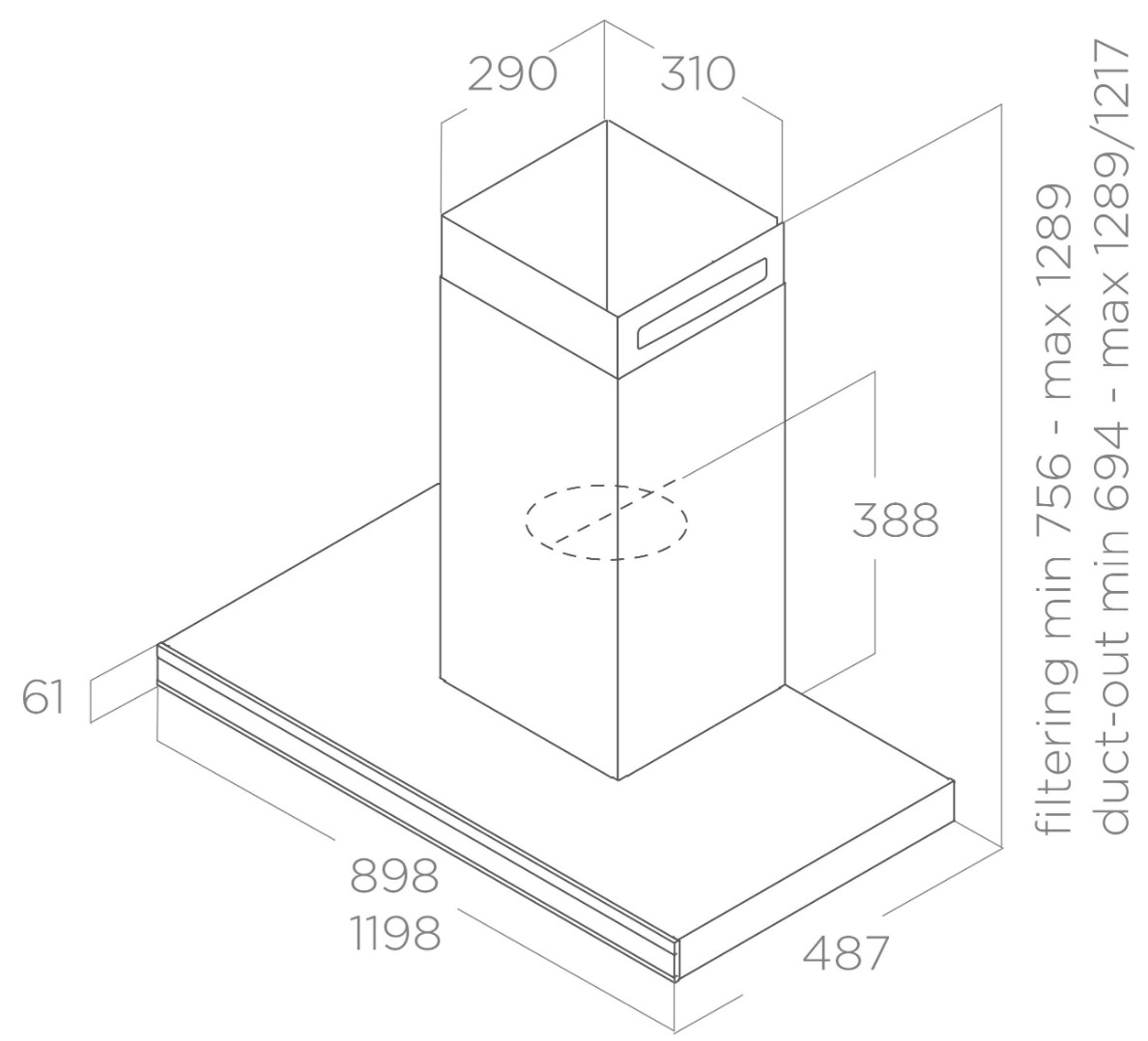 - Минимальная высота над электрической плитой: 50 см
