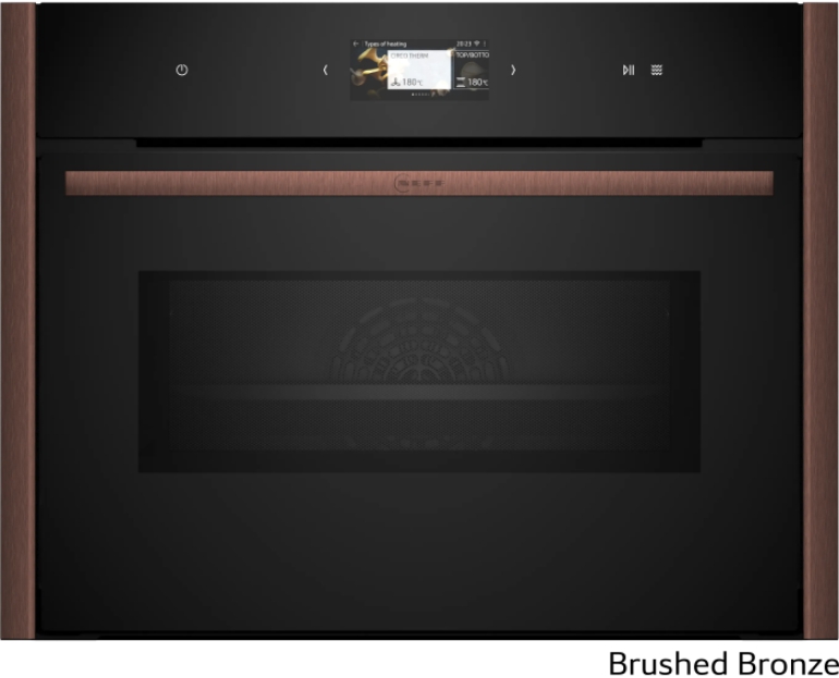 Особенности модели сенсорные переключатели Full Touch Control, светодиодное освещение, функции «Выпечка», «Пицца», «Режим для подъема теста», 4D-горячий воздух, CircoTherm, 5 уровней мощности микроволн, дверца духовки с амортизатором SoftMove