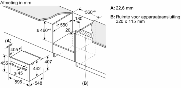 • Размеры ниши для встраивания, см (В х Ш х Г): 45-45.5 х 56-56.8 х 55